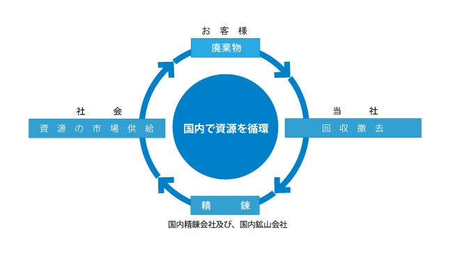 技術大国日本が誇る精錬技術において貴金属の抽出を行い、高品位マテリアルの市場供給を実現しております。